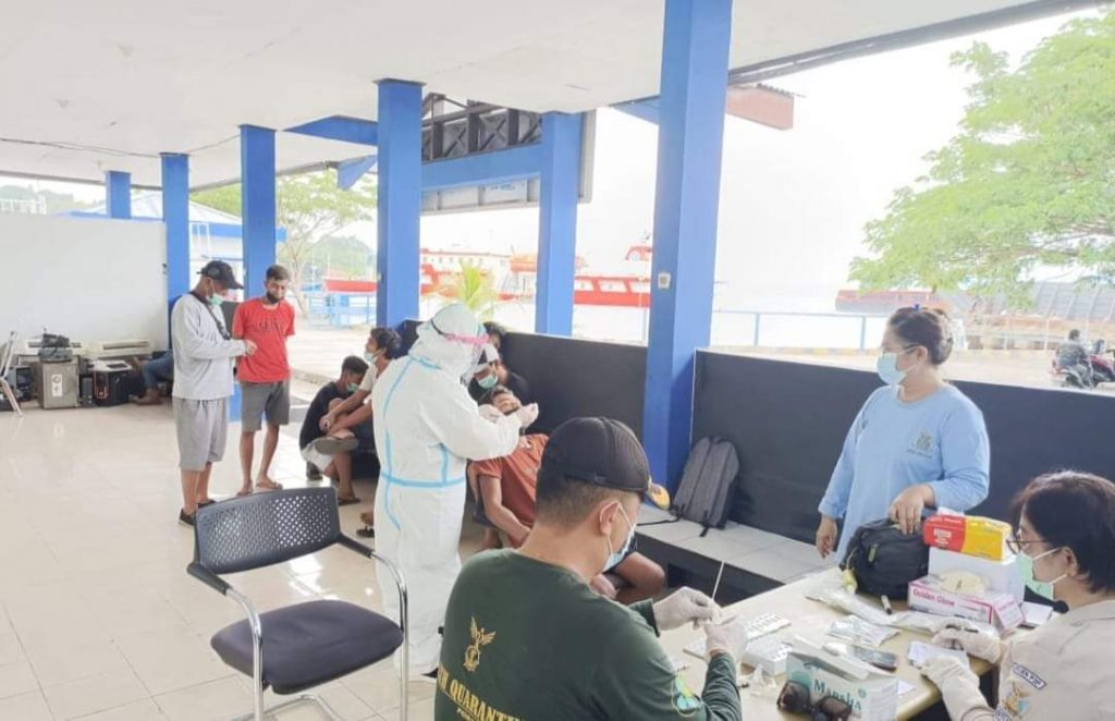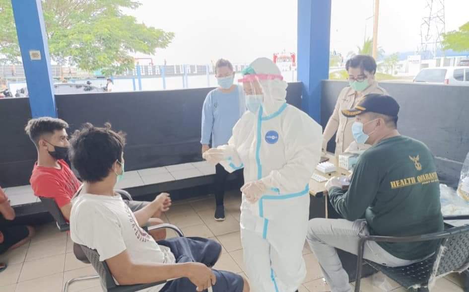 Bertempat di Wilayah Kerja Pelabuhan Laut Amurang, Kantor Kesehatan Pelabuhan Bitung laksanakan pemeriksaan swab antigen covid-19 dalam rangka pencegahan penyebaran pandemi covid-19. Target pemeriksaan dilakukan terhadap ABK kapal, supir penyintas, buruh dan petugas pelabuhan lainnya.