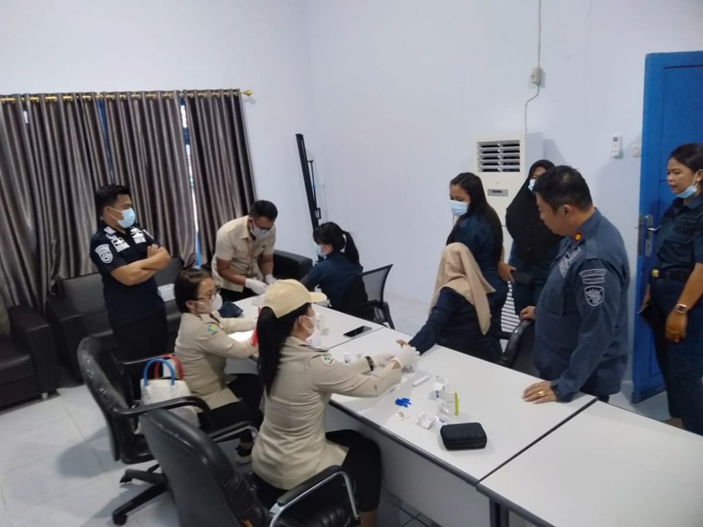 Kegiatan pada hari itu diawali dengan pemeriksaan tekanan darah, asam urat dan gula darah pada beberapa pegawai di UPP kelas III Labuan Uki dan dilanjutkan dengan pemeriksaan sanitasi tempat-tempat umum di area Pelabuhan Labuan Uki.