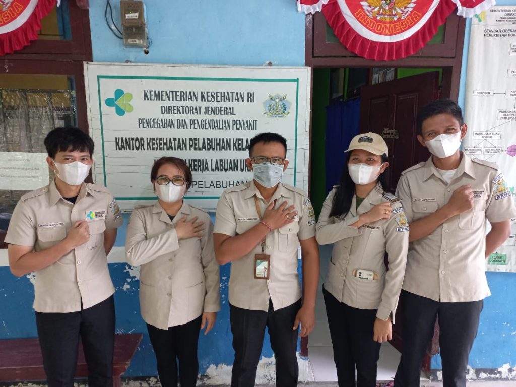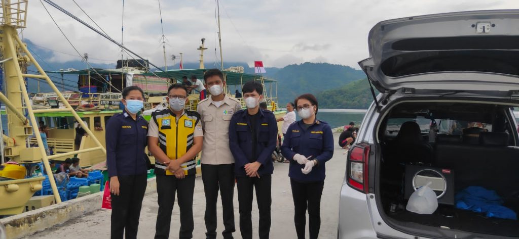 Sejalan dalam tugas dan fungsi KKP dalam cegah tangkal penyakit, maka Kantor Kesehatan Pelabuhan Bitung melaksanakan tugas rutinnya yakni pengawasan kualitas lingkungan dan pemeriksaan kesehatan dalam rangka deteksi dini penyakit. Kegiatan kali ini dilakukan di Wilayah Kerja Pelabuhan Laut Labuan Uki dibawah pengaturan langsung oleh Kepala Wilayah Kerja Labuan Uki, bapak I Komang Ardhika, A.Md.Kep.
