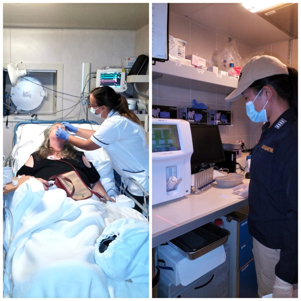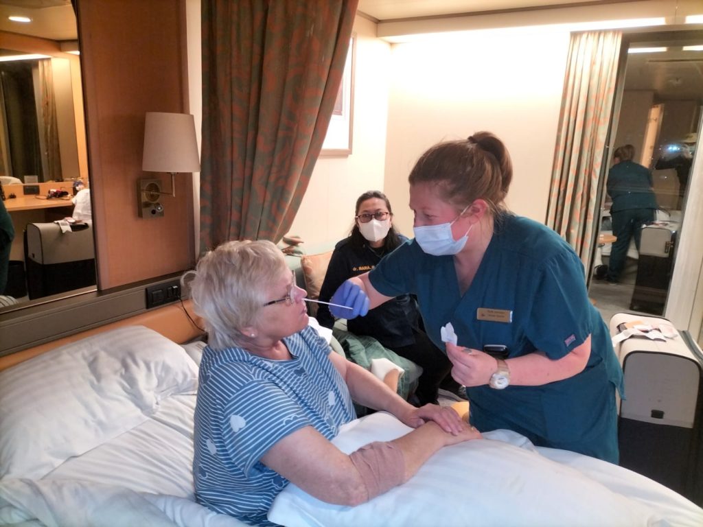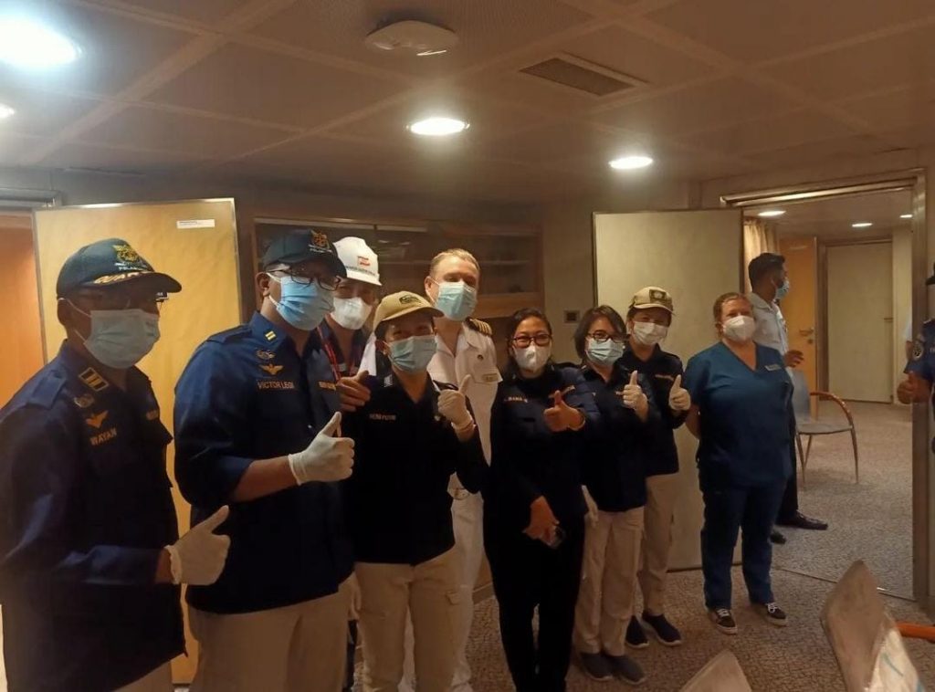 Kantor Kesehatan Pelabuhan Bitung melaksanakan screening cepat terhadap kondisi ke 2 pasien dan 1 jenazah yang dilaporkan oleh tim medis MV. Arcadia. Berdasarkan hasil koordinasi dan pemeriksaan maka jenazah akan dievakuasi dari kapal untuk selanjutnya dilakukan pengiriman menggunakan pesawat ke daerah asal, sedangkan 2 orang pasien dengan status emergency dilakukan rujukan ke Rumah Sakit. Meskipun pemeriksaan Covid-19 rutin dilaksanakan oleh tim medis MV. Aacadia, KKP Bitung tetap mewajibkan pelaksanaan pemeriksaan kembali dengan pengawasan untuk memastikan kondisi terkini pasien, terlebih khusus pasien dengan status akan dirujuk harus bebas dari Covid-19.