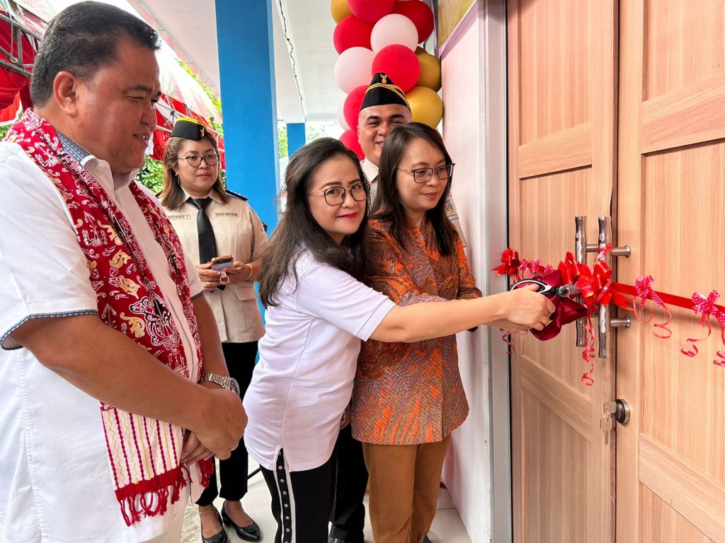 Dilanjutkan proses penandatanganan prasasti peresmian dan pengguntingan pita oleh bapak Dr.dr. Maxi Rein Rondonuwu, DHSM,MARS didampingi oleh Ketua DWP KKP Bitung dan Kepala Dinas Minahasa Utara.