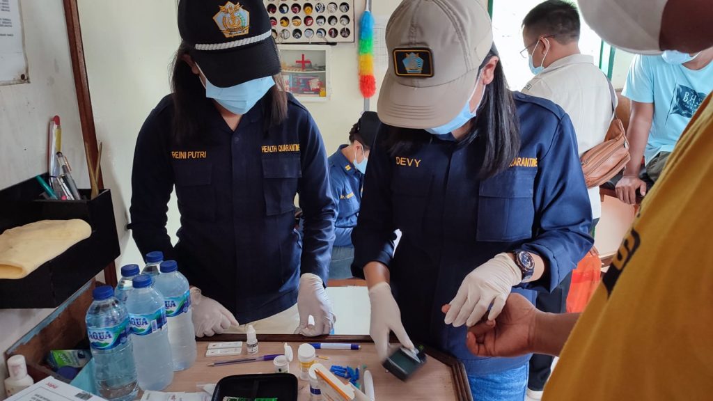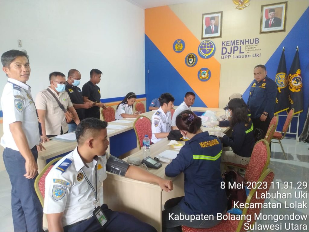 Senin, 8 Mei 2023 Kantor Kesehatan Pelabuhan Bitung kembali melaksanakan pemeriksaan kesehatan pada masyarakat pelabuhan di Wilayah Kerja Pelabuhan Labuan Uki. Pemeriksaan yang dilakukan diantaranya pemeriksaan penyakit menular HIV serta pemeriksaan penyakit tidak menular dalam hal ini pemeriksaan tekanan darah, asam urat, kolesterol dan gula darah. Survei penyakit TB juga dilaksanakan disela sela pelaksanaan pemeriksaan screening HIV dan penyakit tidak menular hari ini.