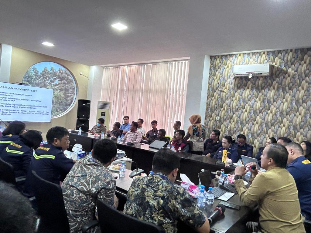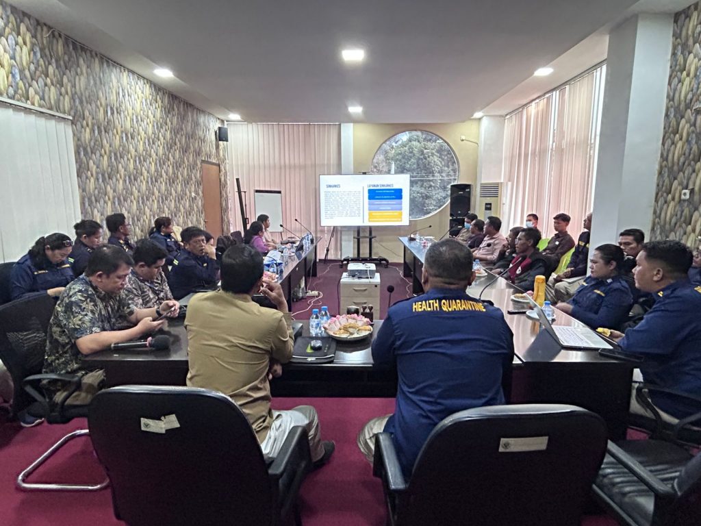 Kamis 7 September 2023. Kantor Kesehatan Pelabuhan Bitung didampingi tim Direktorat Surveilans dan Kekarantinaan Kesehatan melaksanakan sosialisasi terkait implementasi layanan digital dalam hal ini interkoneksi aplikasi SINKARKES dengan SIMPONI. Kegiatan ini diikuti oleh seluruh pegawai Kantor Kesehatan Pelabuhan Bitung dan perwakilan dari pihak agen kapal perusahaan maupun perorangan.