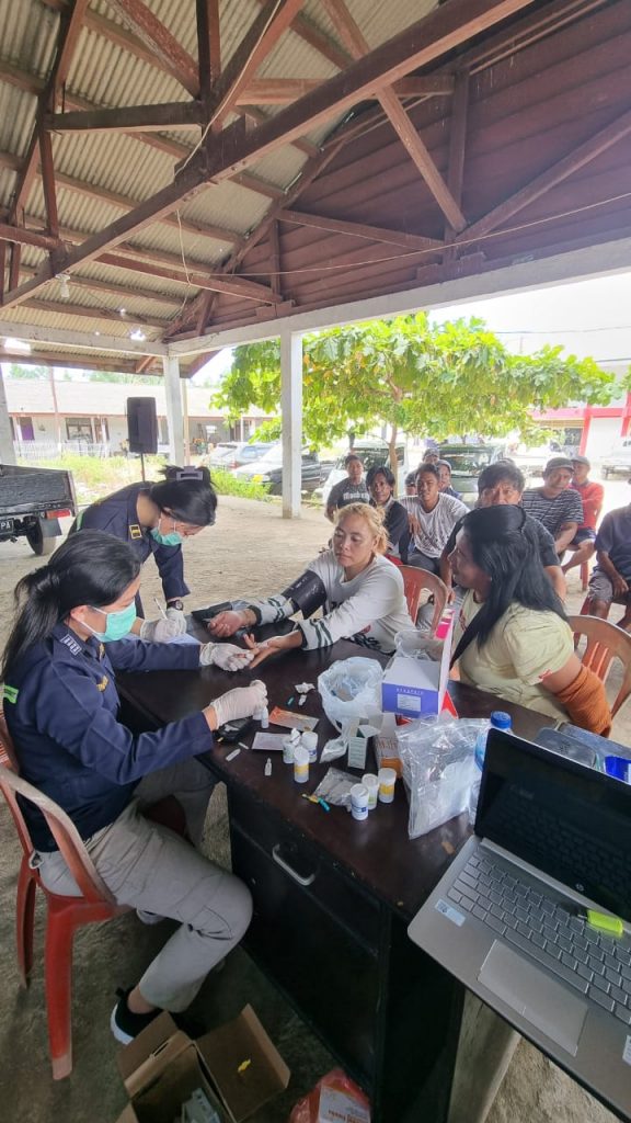 Kegiatan diawali dengan sosialisasi tentang kesehatan dan juga pemeriksaan kesehatan yang meliputi pemeriksaan kolesterol, asam urat, gula darah, malaria, HIV, tekanan darah dan survei gejala TB.