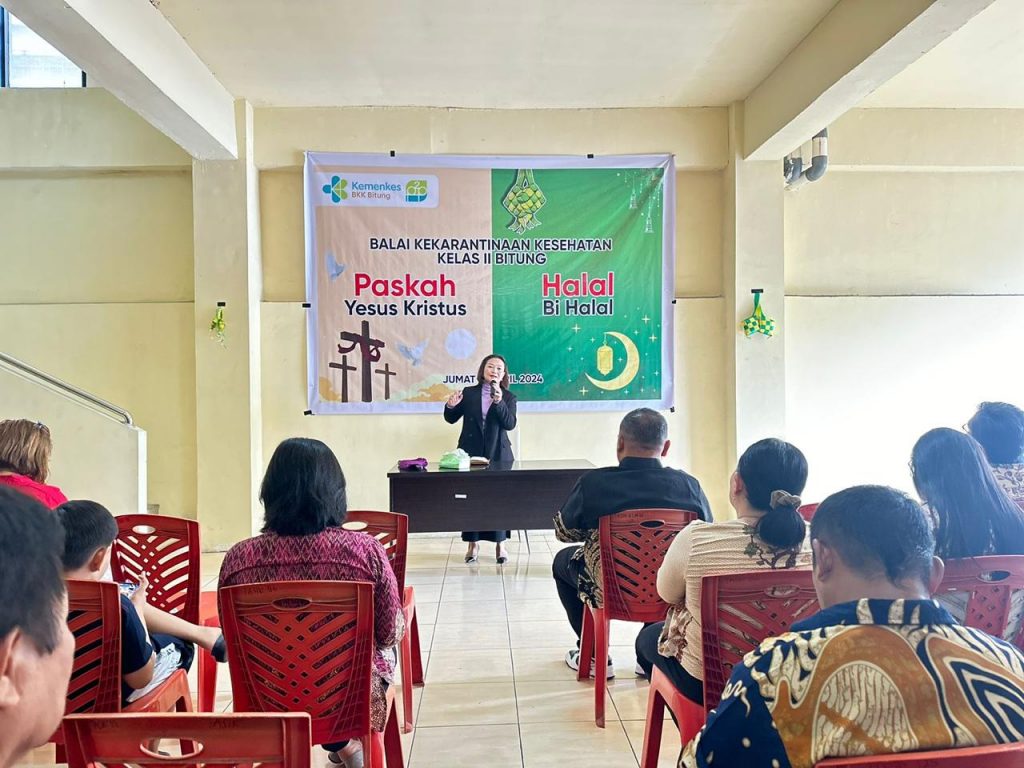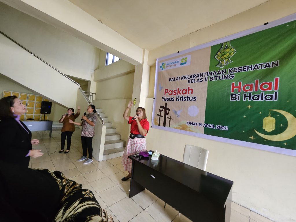 Jumat,19 April 2024. Balai Kekarantinaan Kesehatan Bitung laksanakan syukur Paskah dan Halal Bihalal. Kegiatan diawali deng ibadah yang dipimpin oleh gembala Cicilia Taju.