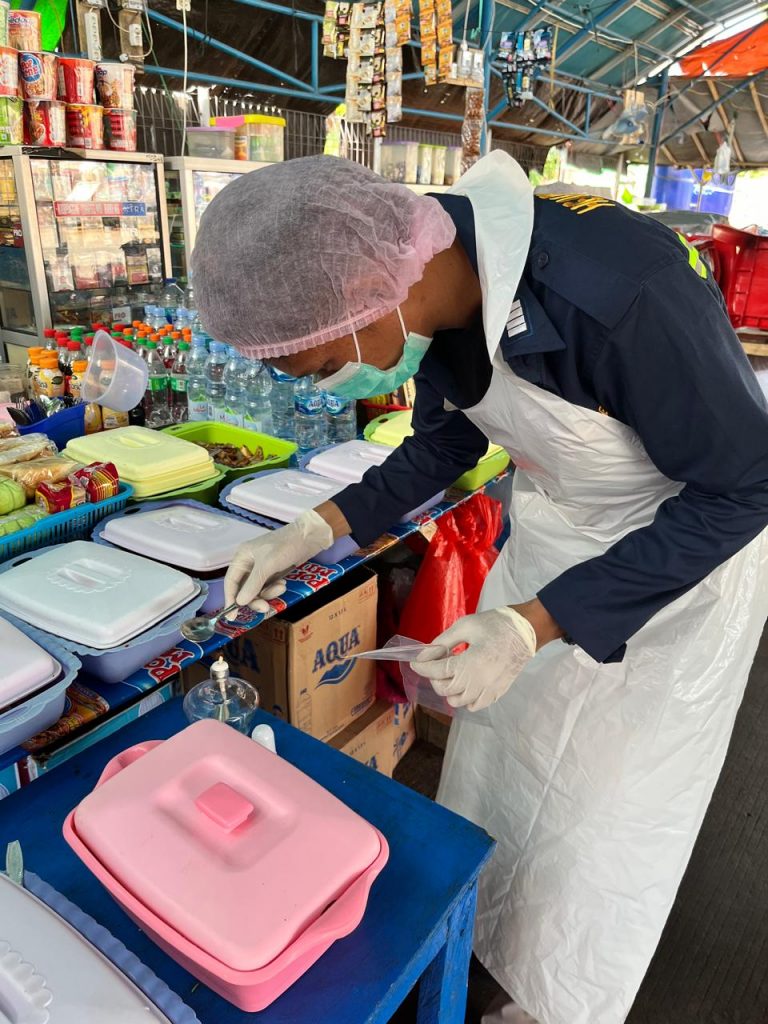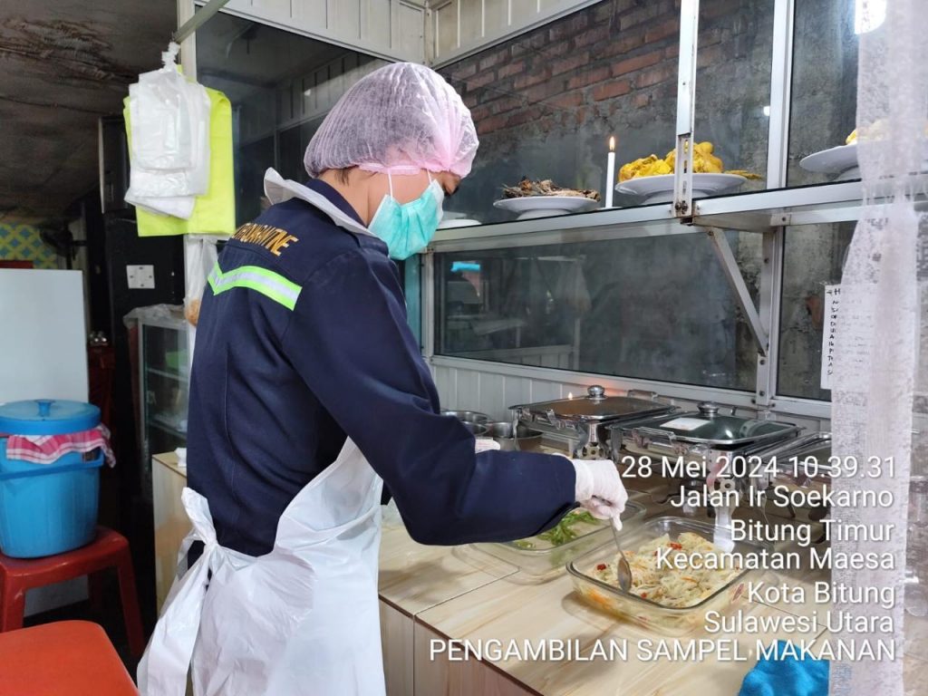 Pelaksanaan pengambilan sampel makanan dilakukan untuk jenis pemeriksaan mikrobiologi. Lokasi pengambilan sampel dilakukan pada 6 titik, diantaranya: RM. Suroboyo, RM. An Nur, Kantin Syahbandar, Kantin ASDP, Kantin PPS, Kantin BKK Bitung. Jenis sampel yang diambil berupa nasi putih, lauk (ikan), sayur, sambel dan gorengan.