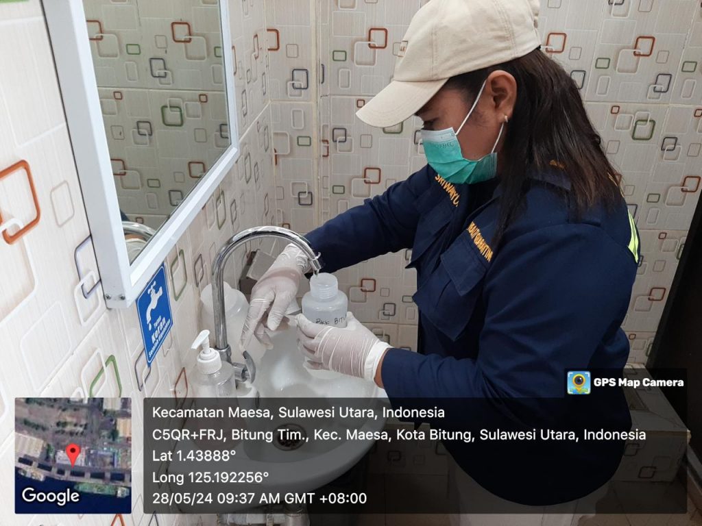 Pengambilan sampel air bersih dilakukan untuk pemeriksaan kimia dan bakteriolgis. Lokasi pengambilan sampel dilakukan pada 6 lokasi, yaitu: Kantor BKK lama, Kantor Bea & Cukai, Terminal Penumpang Pelabuhan Samudera Bitung, Kantor Pelindo, Kantor ASDP dan Kantor BKK baru.
