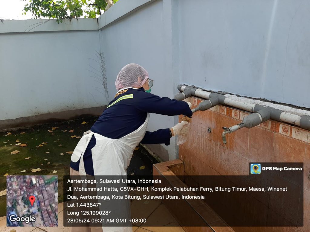 BKK Bitung kembali laksanakan kegiatan rutin pengawasan resiko lingkungan. Kegiatan yang dilakukan meliputi pengawasan sanitasi TPP (Tempat Pengolahan Pangan), pengambilan sampel air dan sampel makanan.