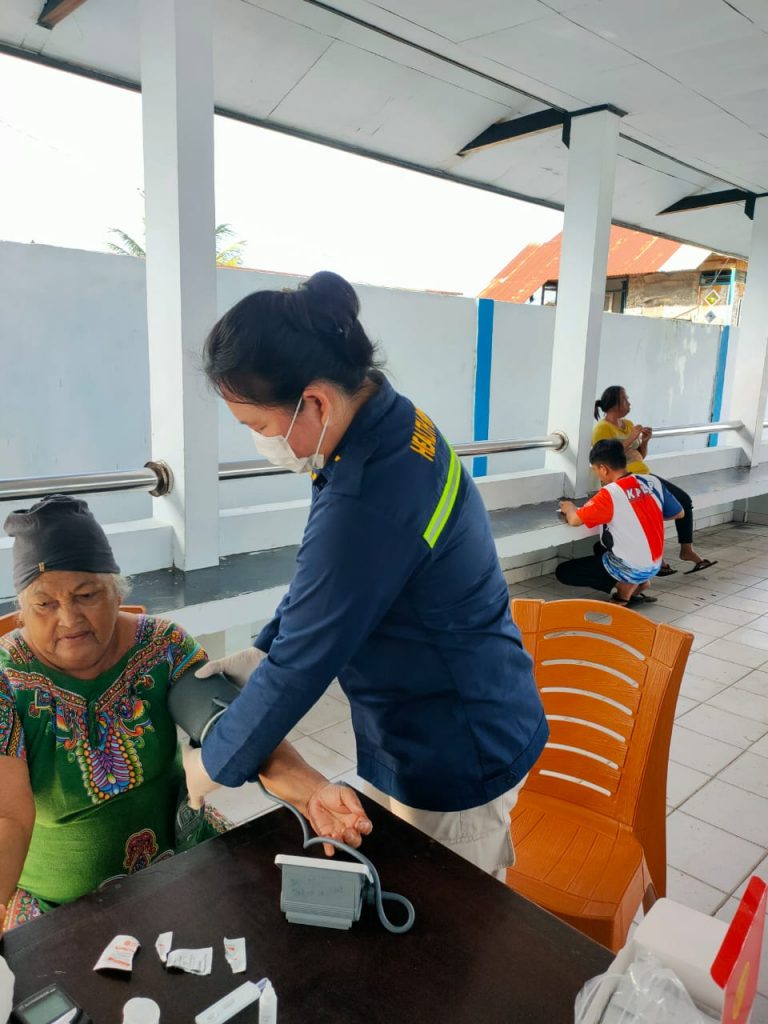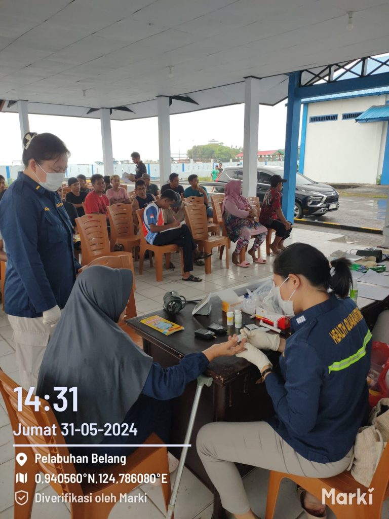 Pemeriksaan kesehatan yang dilakukan diantaranya pemeriksaan tekanan darah, kolesterol, asam urat, gula darah, malaria dan HIV. Terdapat total 100 peserta yang mengikuti sosialisasi kesehatan dan pemeriksaan kesehatan di 2 wilayah kerja terkait ( Wilayah Kerja Kema dan Wilayah Kerja Belang).