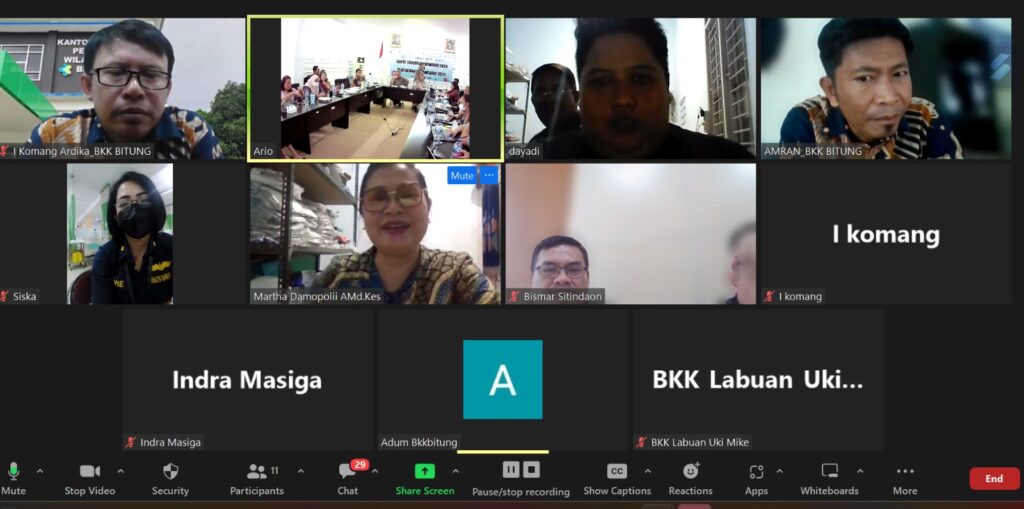 Rapat berjalan dengan baik hingga pukul 17.00 WITA dihadiri oleh seluruh staf pegawai BKK Bitung di kantor induk dan juga seluruh pegawai BKK Bitung di Wilayah Kerja secara luring melalui zoom.