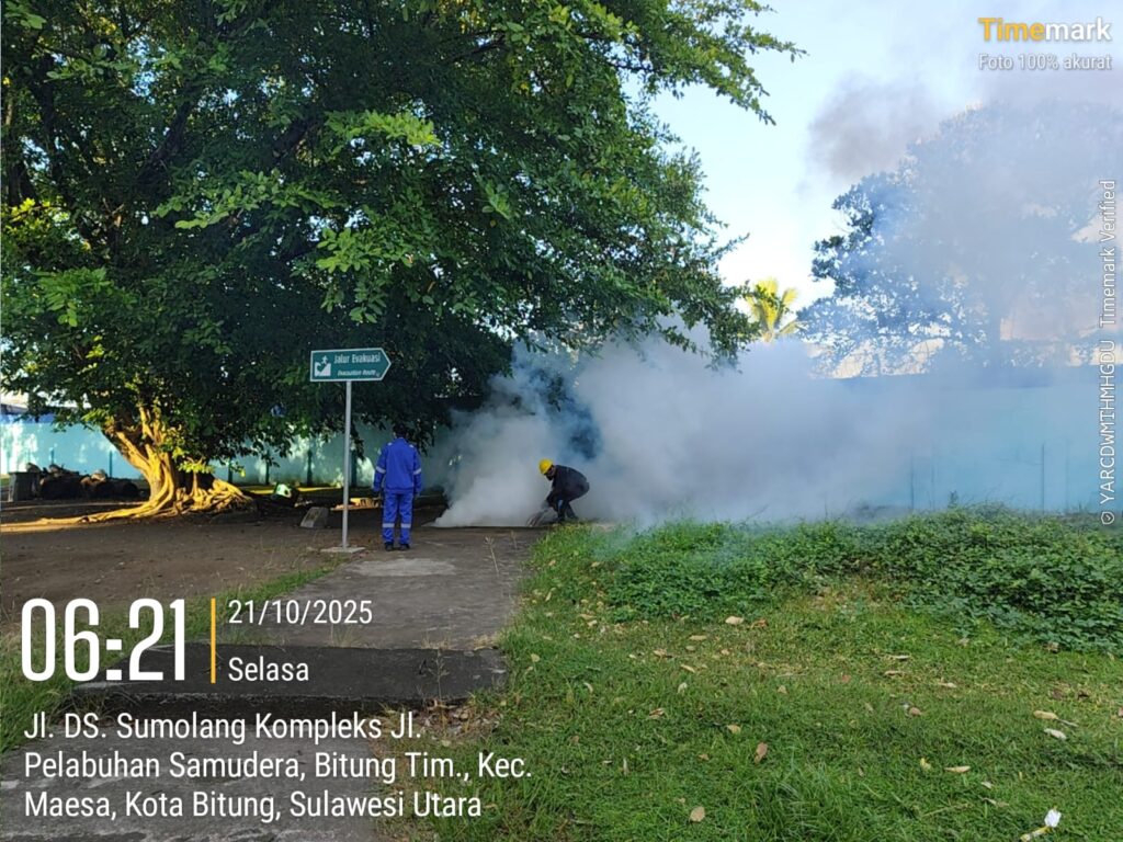Kegiatan fogging dimulai sejak pagi hari, diawali dengan persiapan petugas seperti pengecekan perlengkapan, dan penyusunan rencana area yang menjadi fokus pengasapan. Pengasapan dilakukan menyeluruh di area terminal penumpang, dermaga, gudang pelabuhan, hingga kawasan pemukiman sekitar, yang berpotensi menjadi tempat perkembangbiakan nyamuk Aedes aegypti dan Aedes albopictus, pembawa virus penyebab Demam Berdarah Dengue (DBD).