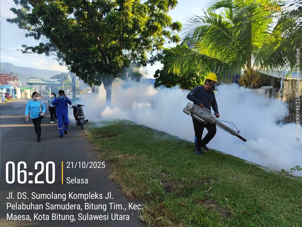 Bitung, 21 Oktober 2025 — Dalam rangka menjaga kesiapsiagaan wilayah pelabuhan dari potensi penyakit tular vektor, Balai Kekarantinaan Kesehatan (BKK) Kelas II Bitung melaksanakan kegiatan pengasapan (fogging) di area Pelabuhan Bitung dan sekitarnya. Kegiatan ini dilakukan sebagai bentuk tindakan pencegahan menjelang kedatangan kapal pesiar MV. Oddisey, yang dijadwalkan akan bersandar pada Kamis, 23 Oktober 2025.