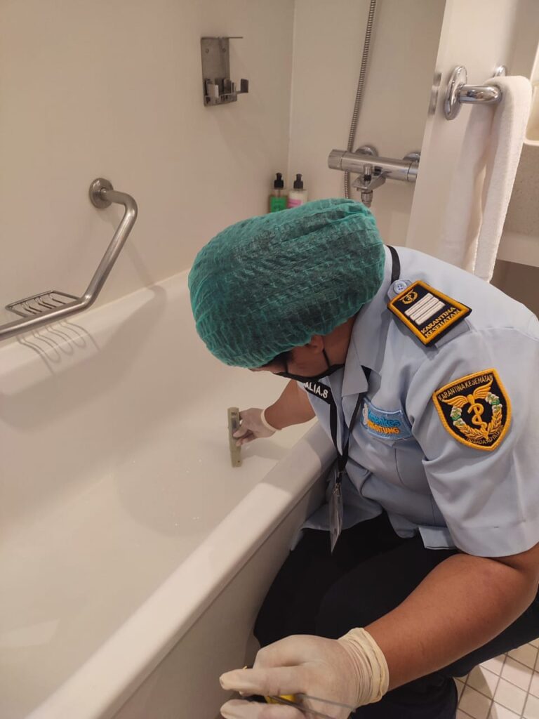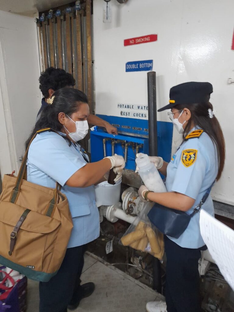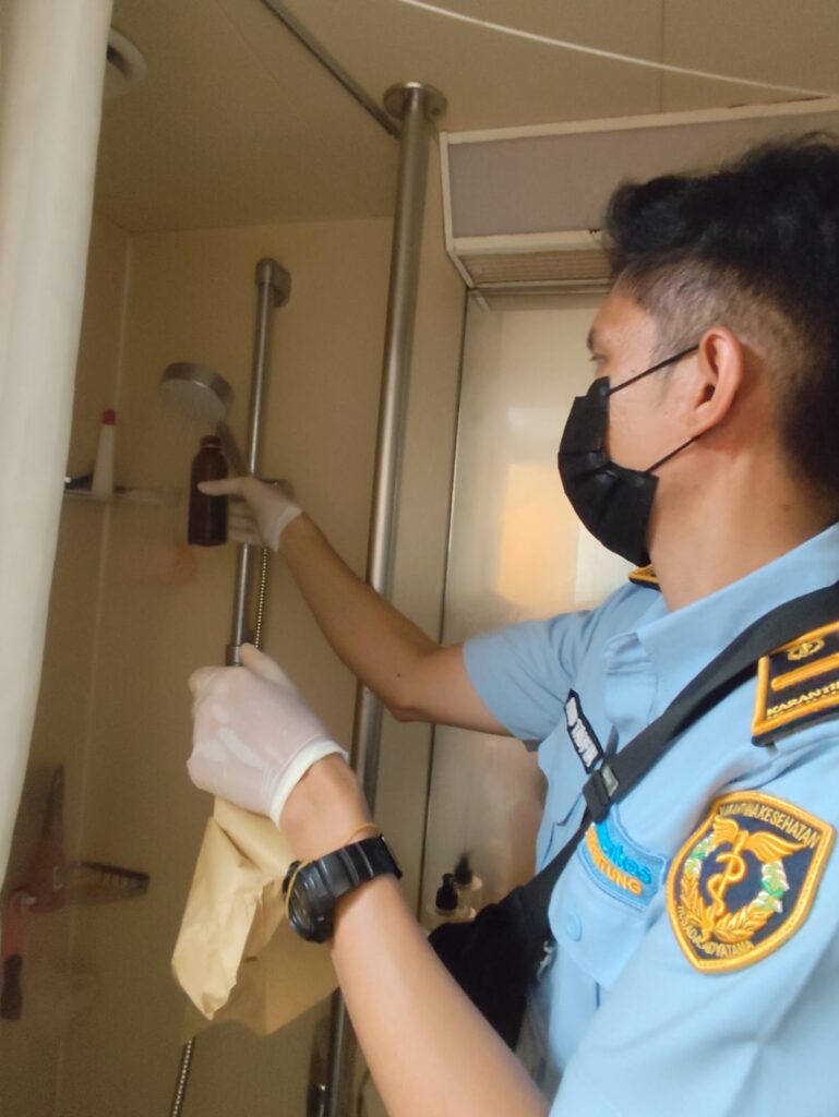 Sebagai bagian dari pengawasan kesehatan lingkungan kapal, tim BKK Kelas II Bitung melakukan pengambilan 40 titik sampel air dari berbagai lokasi di atas kapal, antara lain tangki penyimpanan, kran distribusi, dan fasilitas umum. Pemeriksaan laboratorium akan difokuskan pada dua parameter utama, yaitu keberadaan bakteri Escherichia coli (E. coli) dan Legionella spp.