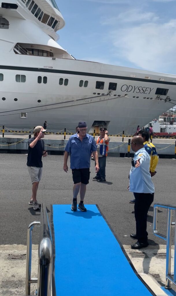 Bitung, 23 Oktober 2025 — Dalam rangka menjamin terlaksananya upaya kekarantinaan kesehatan di pintu masuk wilayah laut, Balai Kekarantinaan Kesehatan (BKK) Kelas II Bitung melaksanakan kegiatan pengawasan kedatangan kapal pesiar MV. ODYSSEY di Pelabuhan Bitung. Kegiatan ini merupakan bagian dari komitmen BKK untuk melindungi masyarakat dari potensi ancaman penyakit menular dan faktor risiko kesehatan yang dapat terbawa melalui kapal internasional. Kegiatan pengawasan ini dipimpin langsung oleh Kepala Balai Kekarantinaan Kesehatan Kelas II Bitung, didampingi Kepala Subbagian Administrasi Umum, Ketua Tim Kerja, serta beberapa petugas sanitarian dan entomolog. Sebelum kapal diizinkan bersandar, tim melakukan pemeriksaan menyeluruh sesuai dengan ketentuan yang berlaku.
