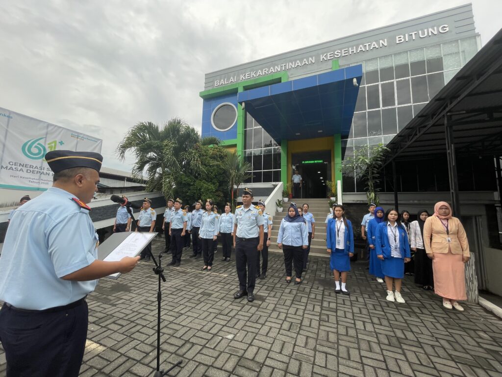 Bitung, 10 November 2025 — Pimpinan dan staf Balai Kekarantinaan Kesehatan (BKK) Kelas II Bitung melaksanakan upacara peringatan Hari Pahlawan Nasional yang berlangsung khidmat di halaman kantor BKK Bitung.
