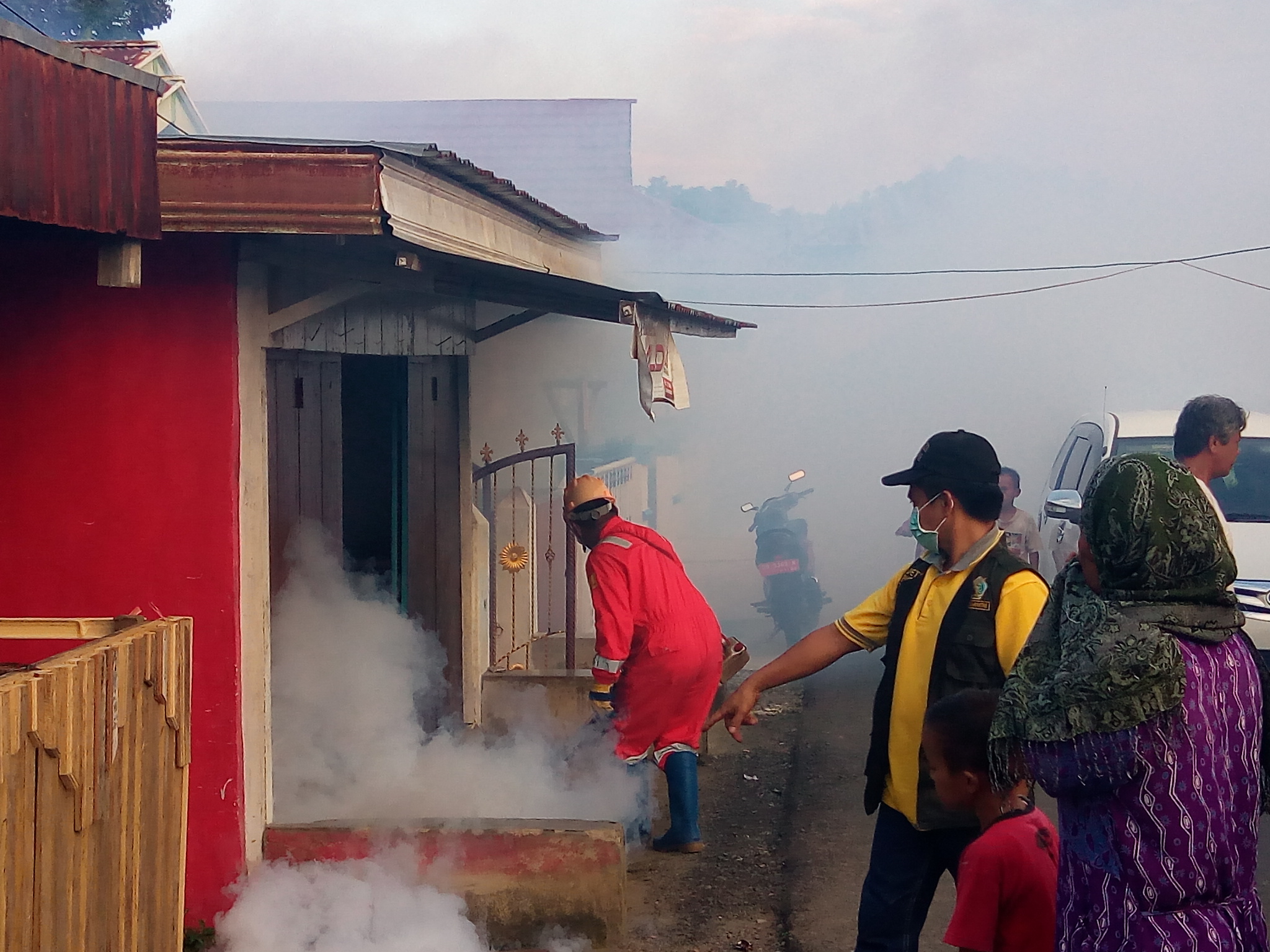 KKP Bitung melaksanakan kerja sama lintas program bersama Dinas Kesehatan Bolaang Mongondow Timur melalui kegiatan Fogging Focus di Desa Bulawan II, Kotabunan, Kab. Bolaangmongondow